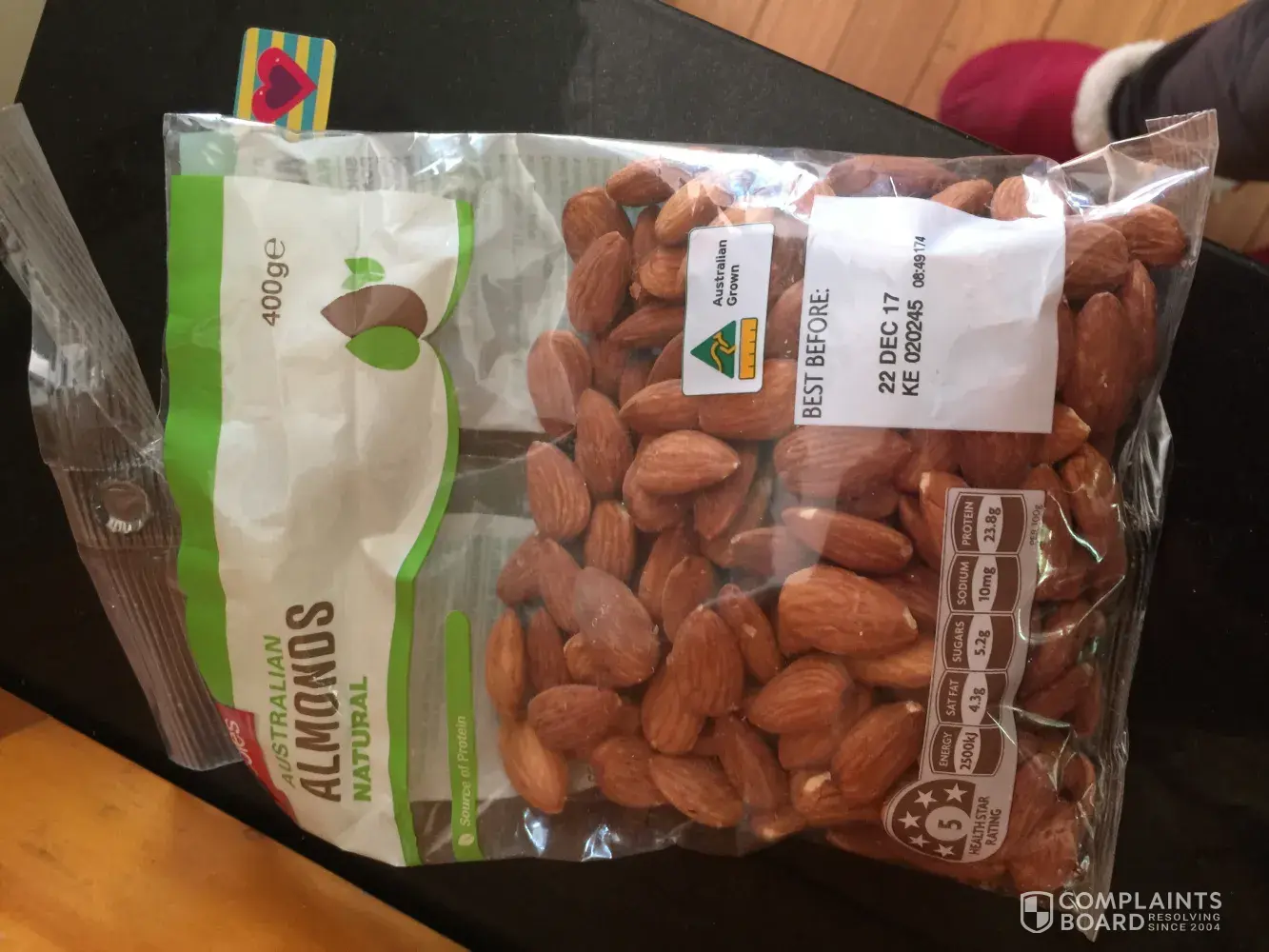 I bought a bag of Almond from Coles, Winston Hills NSW. The expiry date on the package shows 22/12/2017. But when I opened the bag and tried, it tastes old & awful..., its definitely not good for eat.