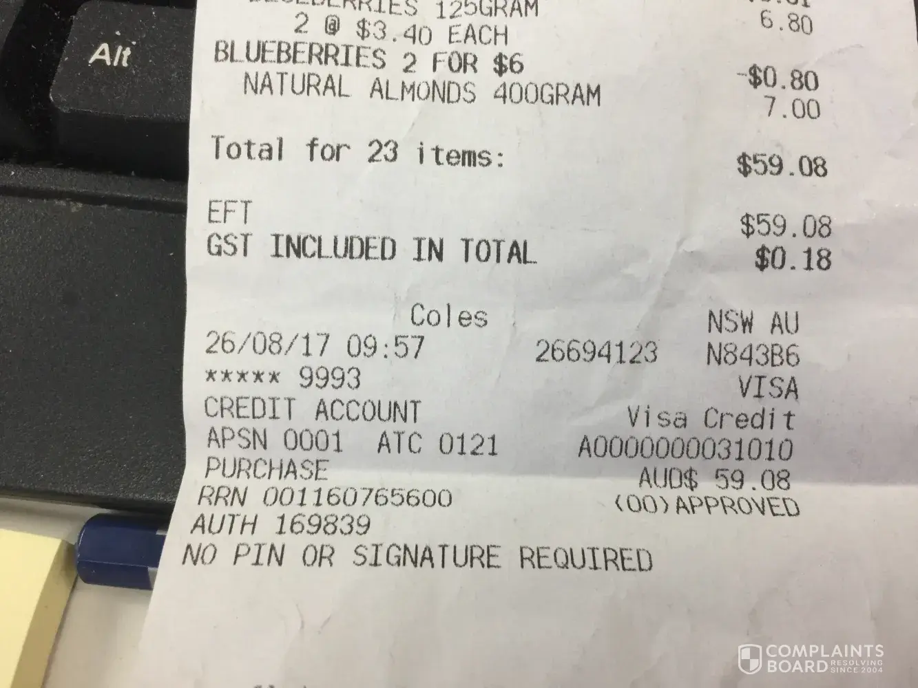 It's caused since I didn't check if the payment result successful. I came back to Hornsby Coles reception after I notices it. A staff rush out and Yelling they will call police. And snatch the stuff what I picked up back.