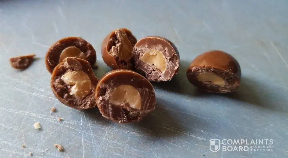 Coles Brand Chocolate Peanuts (milk chocolate). You're really going to only put half a peanut in these? It's not even the peanuts, it's the integrity. As a dedicated customer, I expected more from Coles. The resolution I seek is not money, or extra food, just try to be fair with your products. Be reasonable. Customers notice these things.
