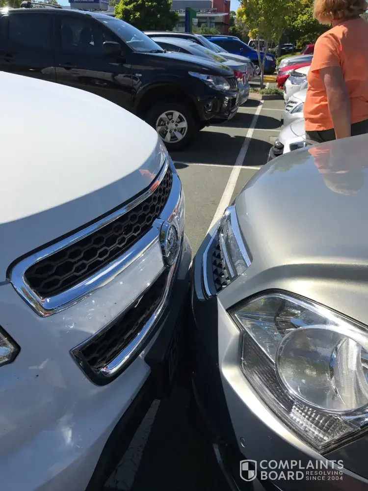 At 11.18 am 29 April 2017 I returned to my car to find this vehicle rego 159XAR jammed up against the front of my vehicle and was not happy to see this as I always park in such a manner to ensure I'm not parked close to other vehicles as both a courtesy and to prevent my vehicle from being damaged. Obviously the person driving this vehicle neither owns it or has consideration for other road users and probably does not care for the organisation he/she is supposed to be representing. I have also found minor damage on my car not doubt caused by this rude person who should neither be allowed on the roads or to work for your organisation as from this action they don't care.