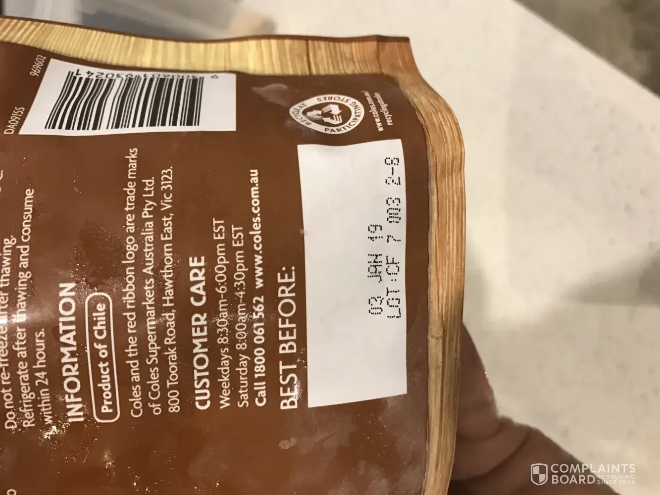I have been shopping at Coles for years and never have I been disgusted as much as this. I always preferred Coles over Woolworths and other supermarkets but I have been put off of your products so much now that i won't be shopping there again. That is just not acceptable on any level at all. I expect to hear back from someone at the most convenient time for you.