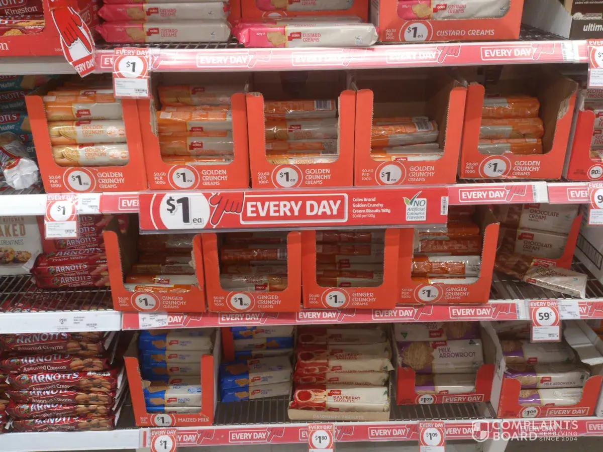 Yesterday when I visited the Rockingham store there were 4 boxes of Ginger Crunchy Creams (see photo) on the shelf next to each other! The day before there were 5! What the hell is going on with Coles?