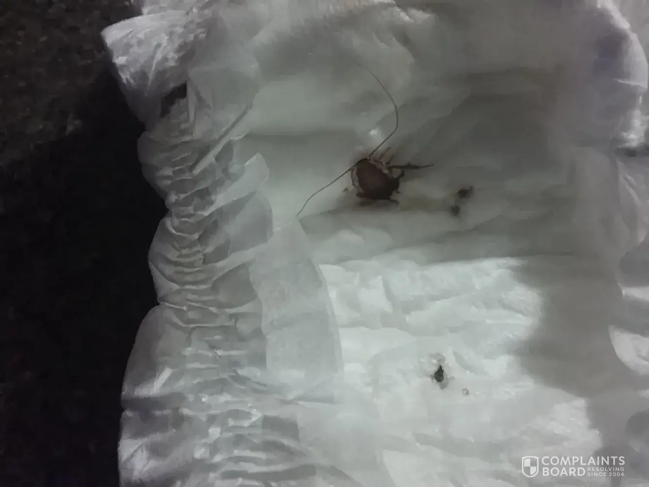 Opened the bag when getting home, needing to change my 2 year old, opened the nappy up and there was a dead cockroach inside the nappy.