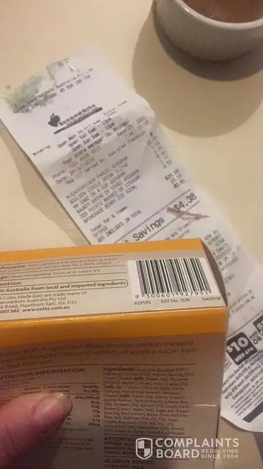 i have complained on numerous occasions to coles 4496 and even to the head office in brisbane. about sour milk in there parmalat iced coffee range, salami going off the next day after it was bought in there deli, eggs that always seem to have one to two stuck to the egg carton coles brand, coles brand frozen pies that the bases fall to bits when heated up in the oven, fruit and vegies that last two days in the fridge then go off.i have complained to coles on facebook to shame them into correcting these issues.but was met with the sarcasm i am used to of lower management in coles stores. i have even threatened to stop shopping there and actualy followed through with this threat.my wife stupedly sent a friend into this store to get some shopping where he got a chicken bar code number, [protected] receipt no.9417 dated today the tenth of october, through register 3 kerry 339.time 17:52 store 4496.now my wife was a manager of a chicken delicatessen called the chicken deli, lucky she had been as she always checks the meat inside the chicken to make sure it is cooked.the coles family chicken $10 special she bought was half raw, so word of warning coles.i cant control if my wife and child buy something from coles on impulse, but!if one of them gets ill through colese lack of interest in fixing these many issues i will sue coles for every cent i can get out of them.