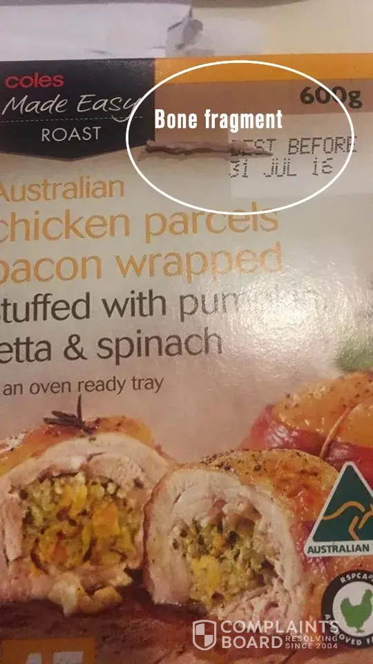 My daughter bought this product last night at Coles and was quite shocked when she nearly swallowed a very sharp bone which was in this 'boneless' product.