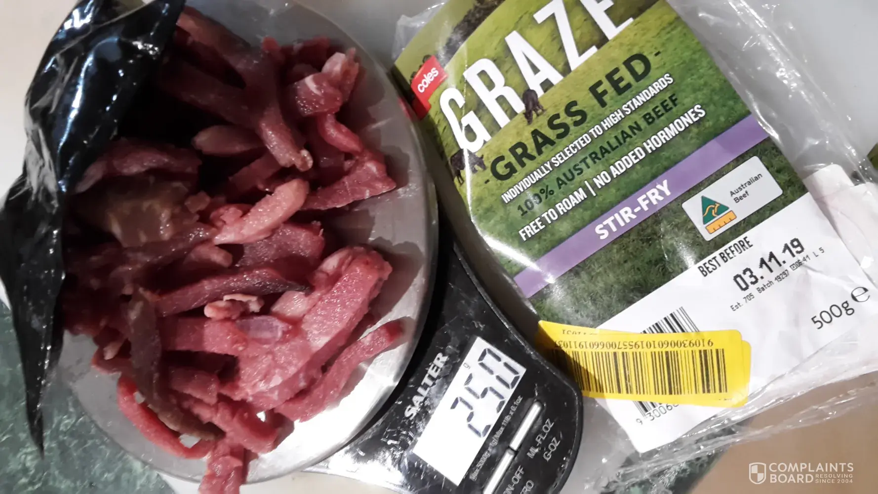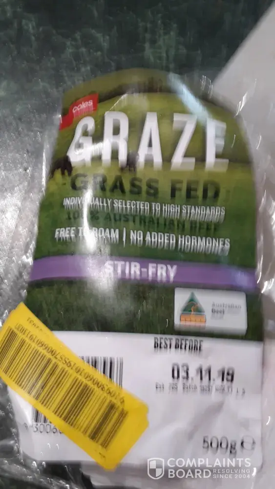 Sunday the 3 Nov i purchases Coles GRAZE - Grass Fed - stir fry beef.