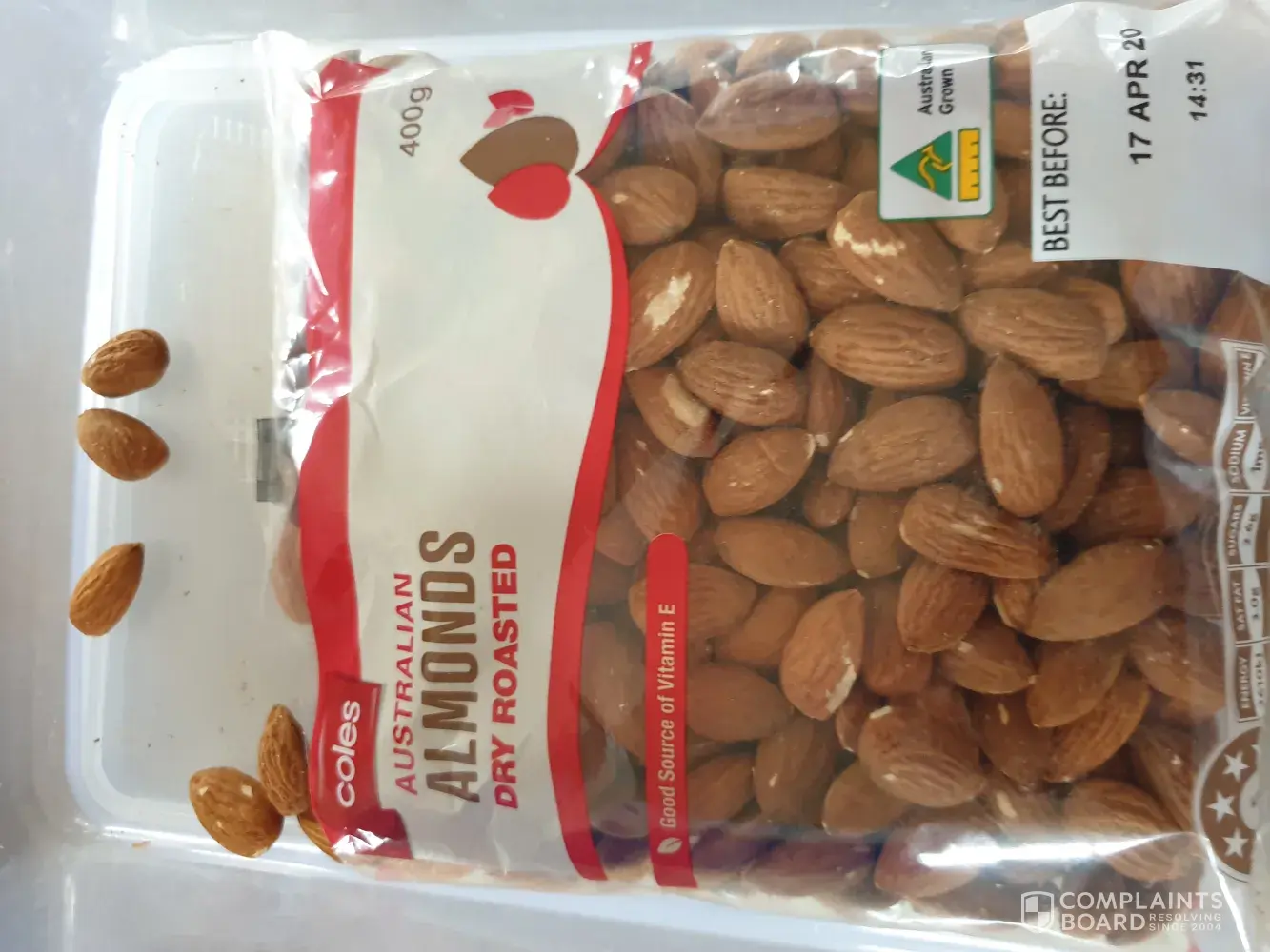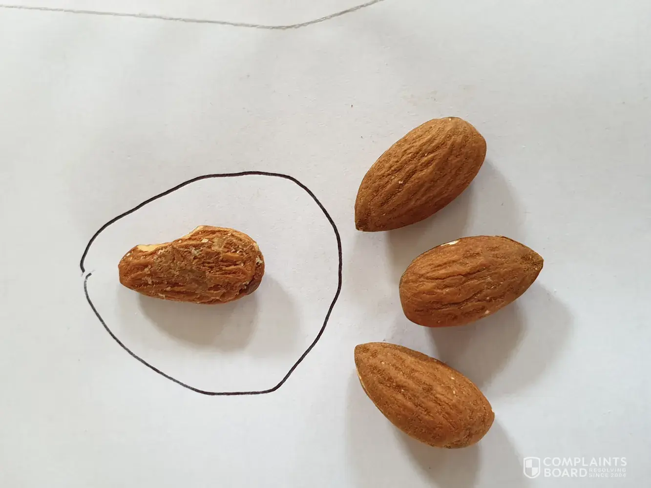 When eating some almonds which are part of my daily eating habit i bit down on one almond which immediately caused pain in my teeth. You can see in the attached pic that i did bite of a small piece of the almond. The almod is soo hard i am grateful that i dident break a tooth . Attached are pice of the rock hard almond and the packaging. I am not even sure if it is an almond