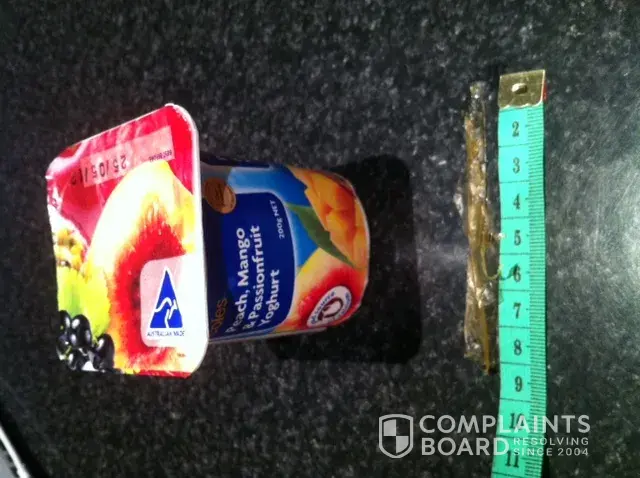 I would expect this matter be fully investigated and product recalled if required as there would be many other children who consume this brand of yoghurt and needless to say, would be a disaster