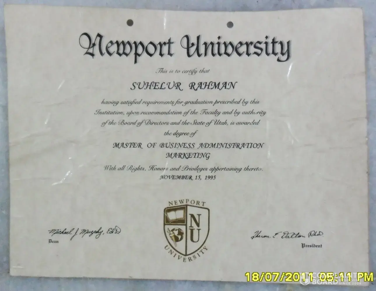 Dear Sir, I like to vocalize that I have completed my MBA Marketing degree Program in 1995 through south Asia chapter New Port University jayanagar, Bangalore. As now I have planning to move to other countries for my career goals therefore I like to confirm my registration no. and authenticity of my degree, I am attaching all my papers please confirm the...