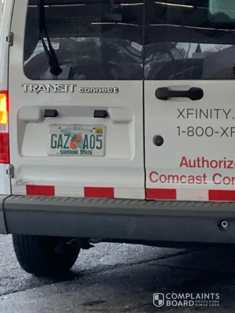 Thanks for posting the license plate photo. That will help our team review and track this down. Appears to be an "Authorized Contractor" for Comcast. Apologies and thanks again.