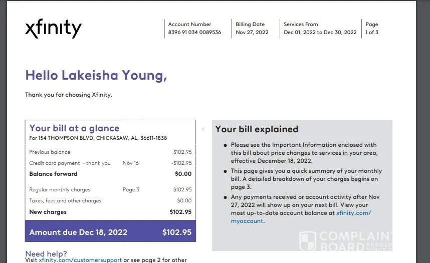 December 16, 2022 829 am I replied with the Proof from my Account that Xfinity took the 2 payments and the amount my account was currently Overdrawn to "online.[protected]@alerts.Comcast.net" the Billing Team. I pressed there blue button reading Click Here.