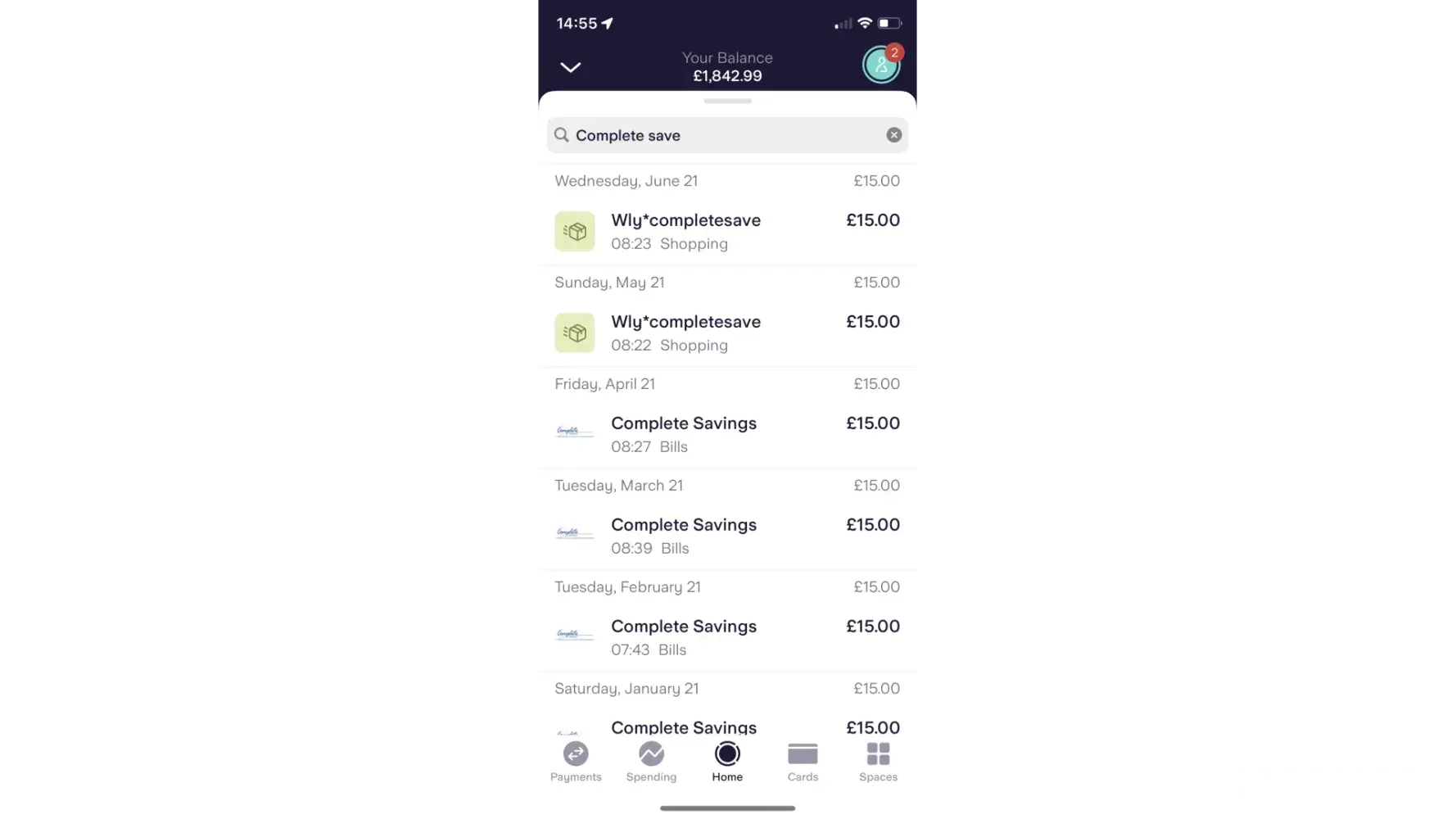 £15 has fraudulently been taken from my account each month under WLY*CompleteSavings.
