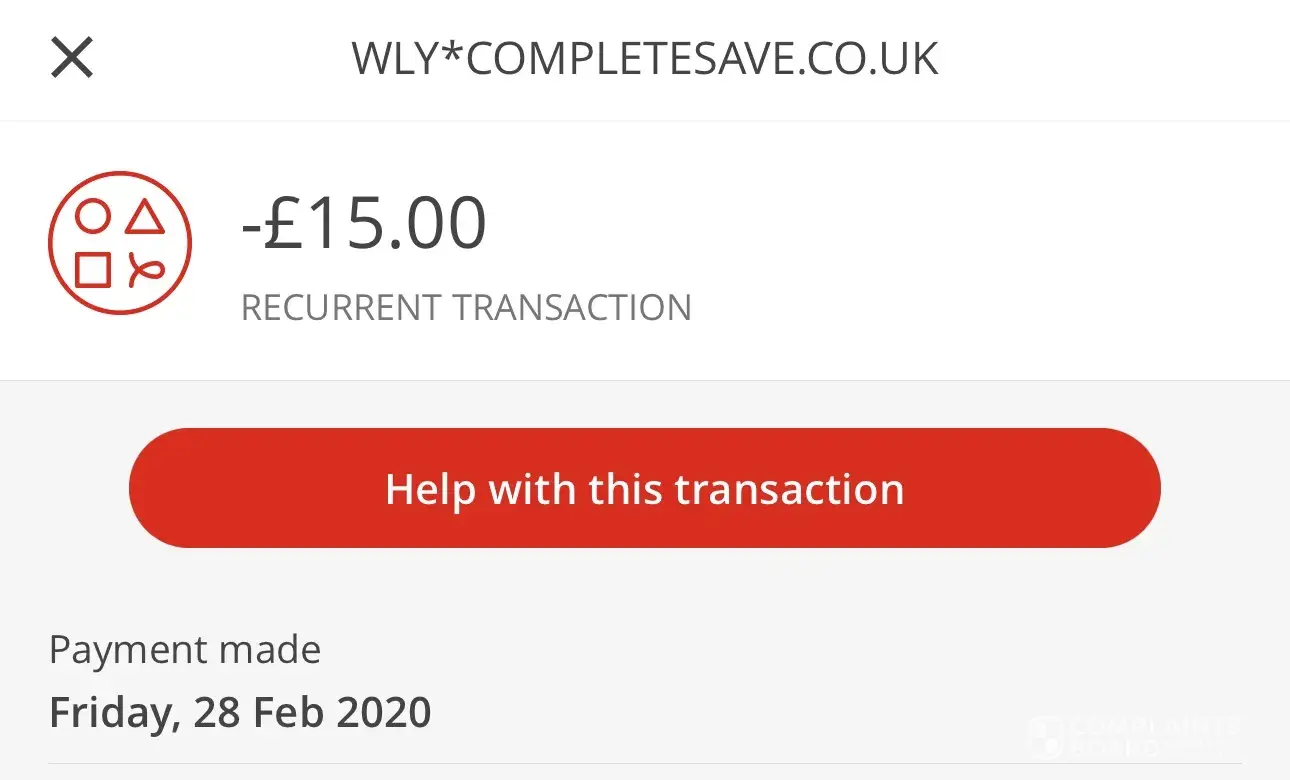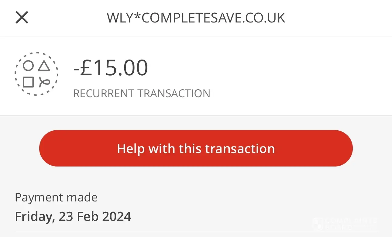 I was checking through my bank account today as I noticed a payment I did not recognise which was referenced as ‘WLY*completesave.co.uk’.