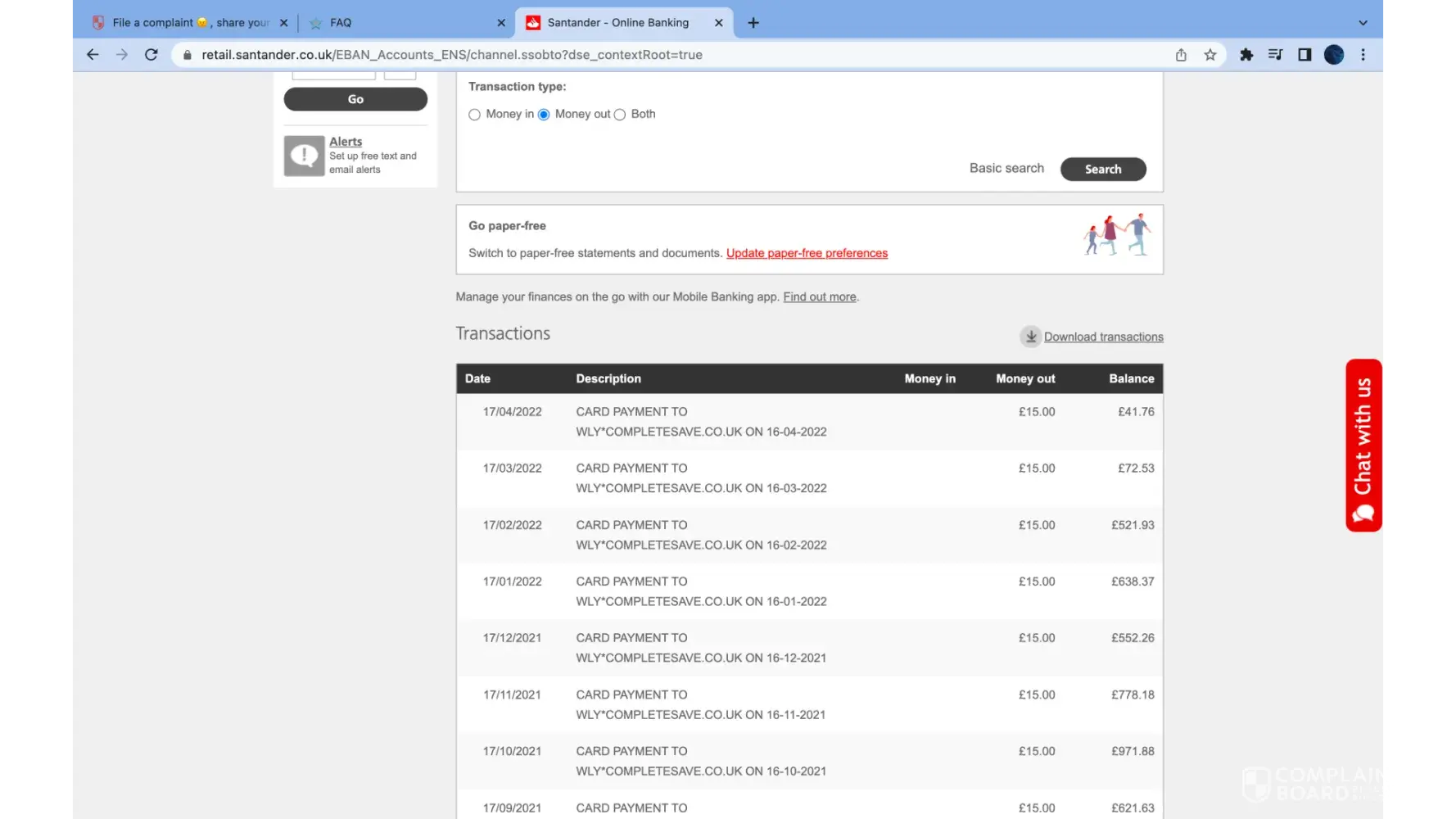 I signed into my online banking this morning and realised im in arrears of £15.00, as completesave had taken this amount.