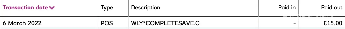 A sum of £15 was taken out of my account without my knowlege on the 10th of march 2022 , never signed up for anything to do with completesave.