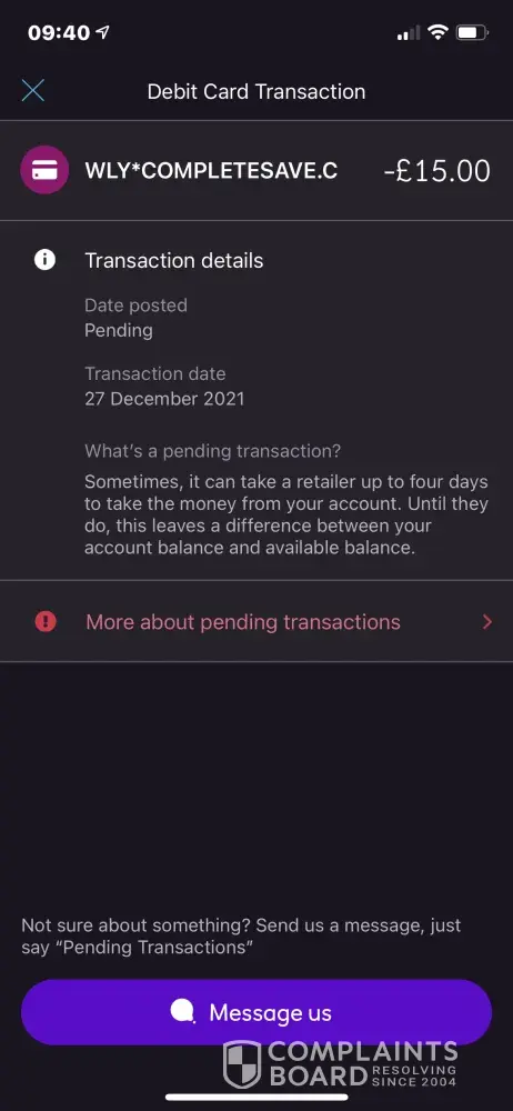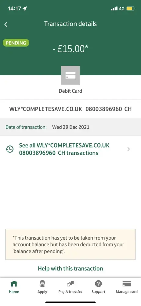 Complete Savings / Complete Save Unauthorised transaction WLY.COMPLETESAVE.CO.UK