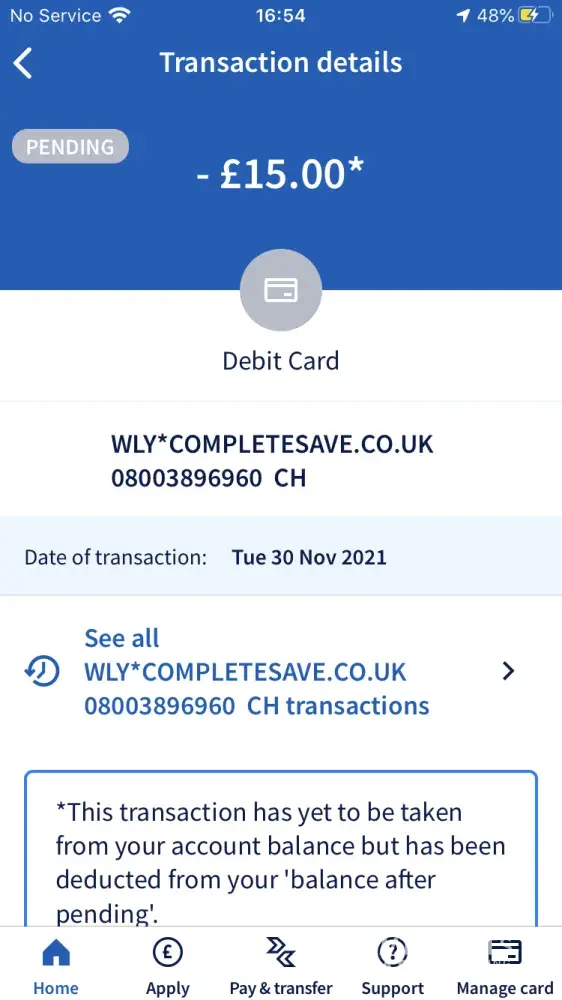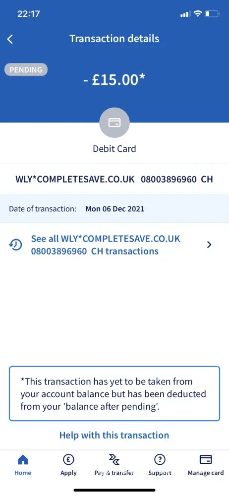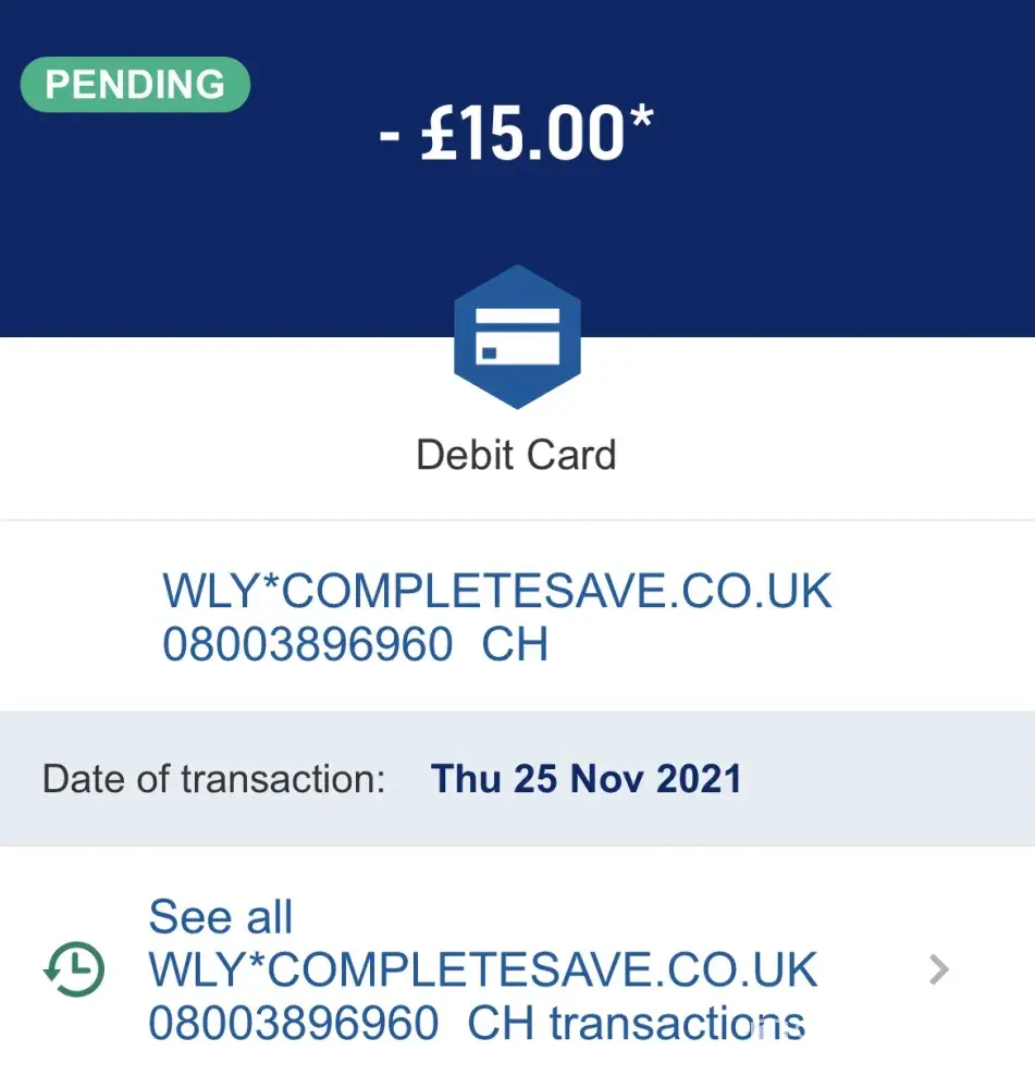WLY Completesave.co.uk have taken monies of £15 per month .