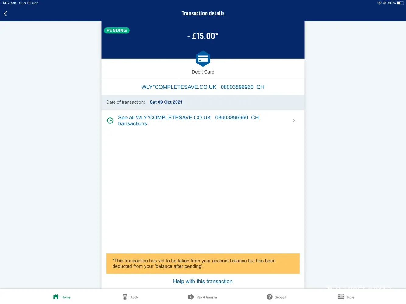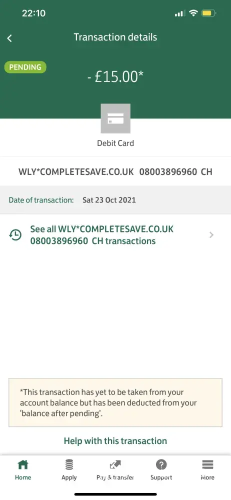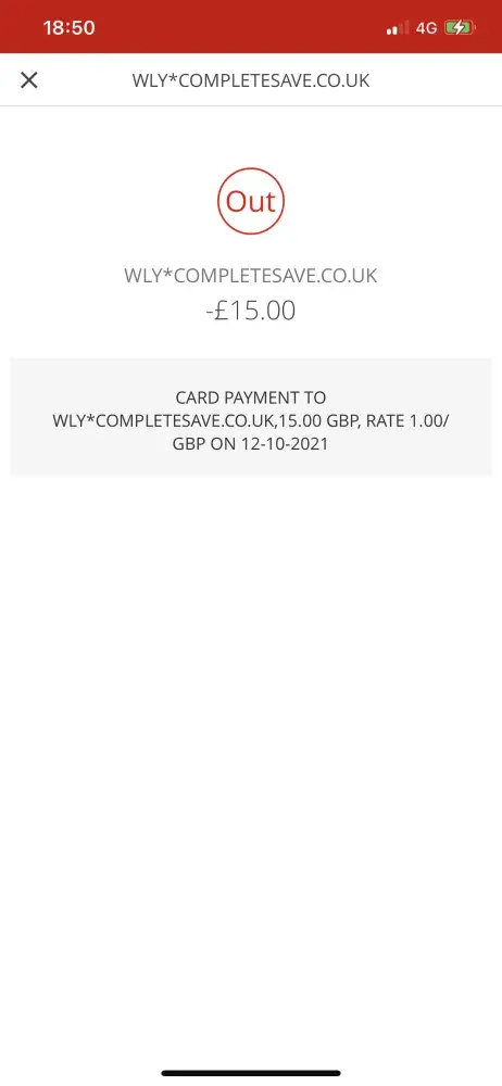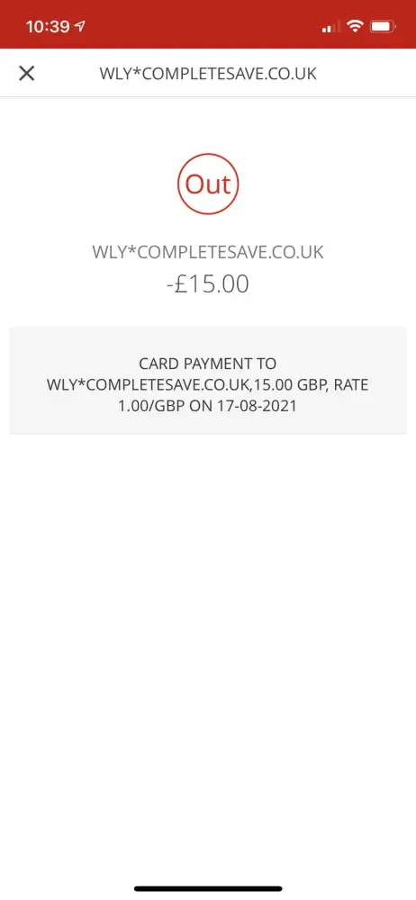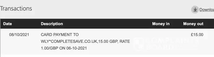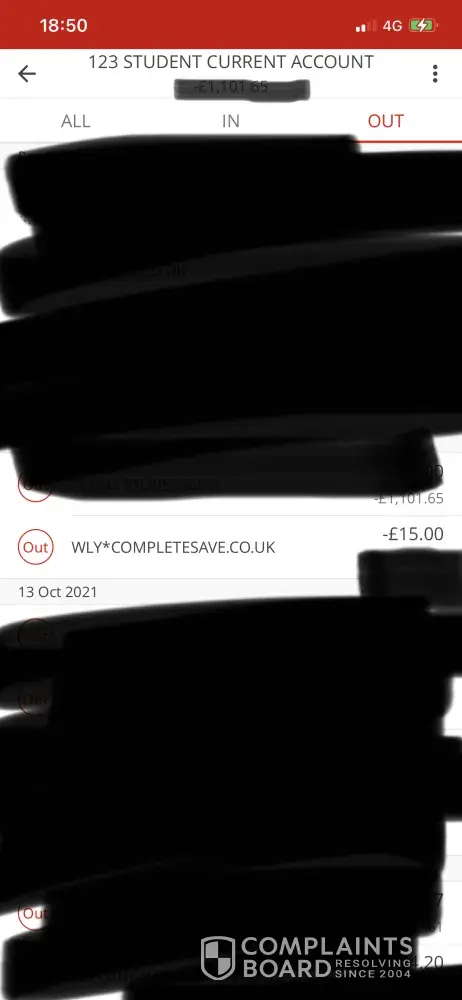 I wrote to complete save as I had noticed that £15.00 a month had been taken from my credit card dating back to 7th July 2020 and I had just noticed a payment that I had no idea what for .
