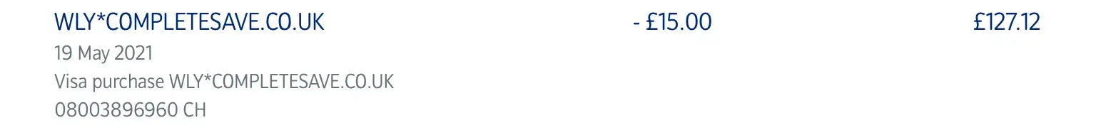 WLY* Complete Save have been taking money fraudulently from my bank account for the last 9 months, totalling £135. I do a small amount of online shopping, but at no time have I requested to join the Complete Save savings plan. I have only just discovered this fraud which is annoying but also because the amount of £15 per month is a small enough amount not to raise alarm bells! I have now contacted my bank and had further payments stopped. Somehow this company has got hold of my details, but I can confirm that I have never completed an application form to join this savings plan or received any emails or other documents from this company. I want my money refunded and this company investigated.