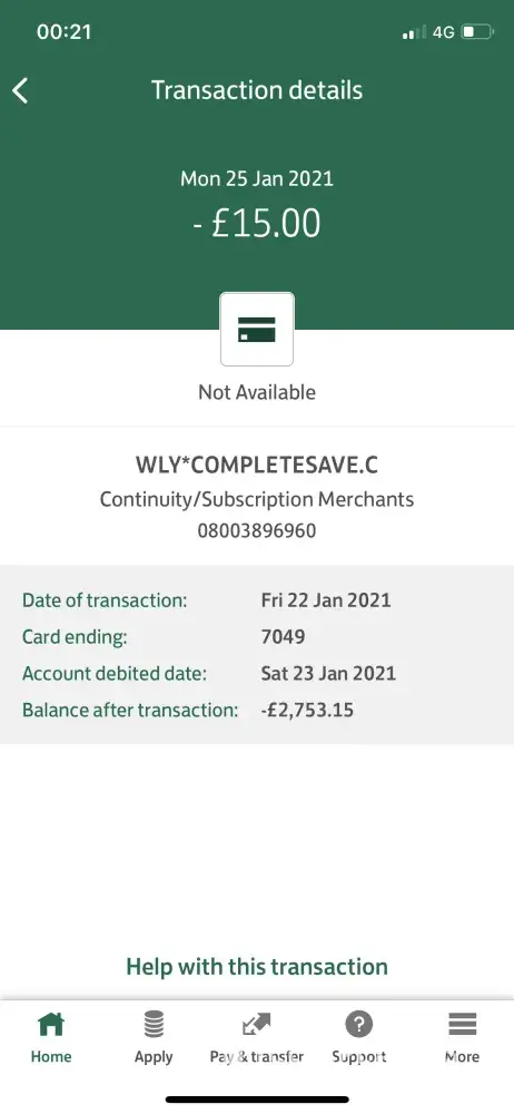 Complete Savings / Complete Save I did not authorise £15 monthly direct payment
