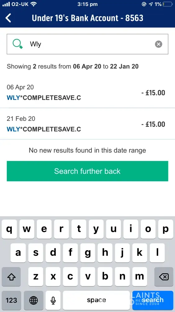 I do a small amount of online shopping usually, but at no time have I requested to join the Complete Save savings plan. I have only just discovered this fraud. I want a full refund and I have notified my bank regarding this. Last payment that was taken was on the 3rd April of £15 WLY also managed to take another payment last month without my consent.
