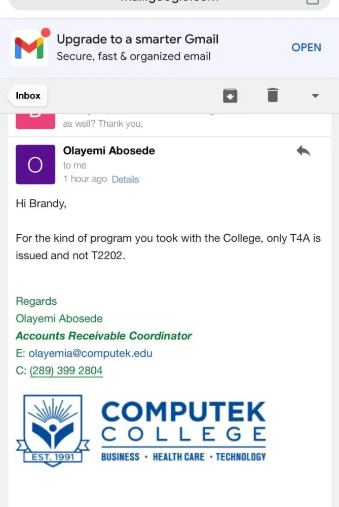 As first they made a contract sign from all of us mentioned that it’s a free course and they will provide 5000$ for each of us after completing the program. We are not even finishing the program, we received the T4 of 13255$ which we didn’t get from the school. We only received 4500$ and they send us a T4 with 13255$ amount. They are fraud all of us saying different things and coming up with the new things. Please solve my situation as soon as possible!