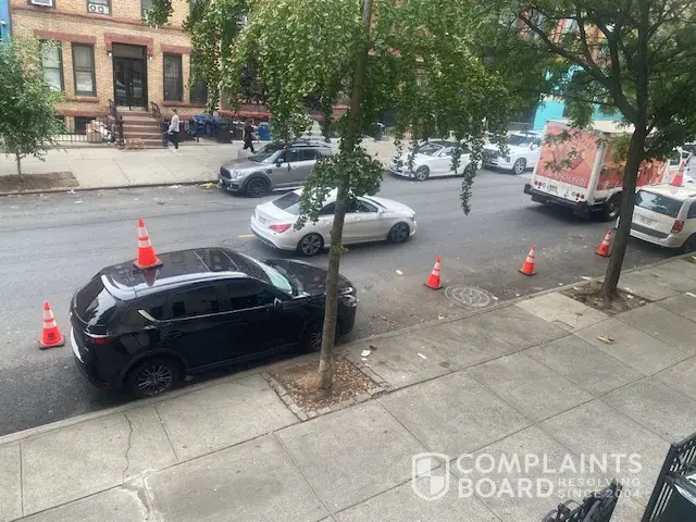 Last week 3 to 4 cars parked in front of 670, 674, 676 and 678 Union St. in Brooklyn and used a dozen orange cones to block parking for their trucks.