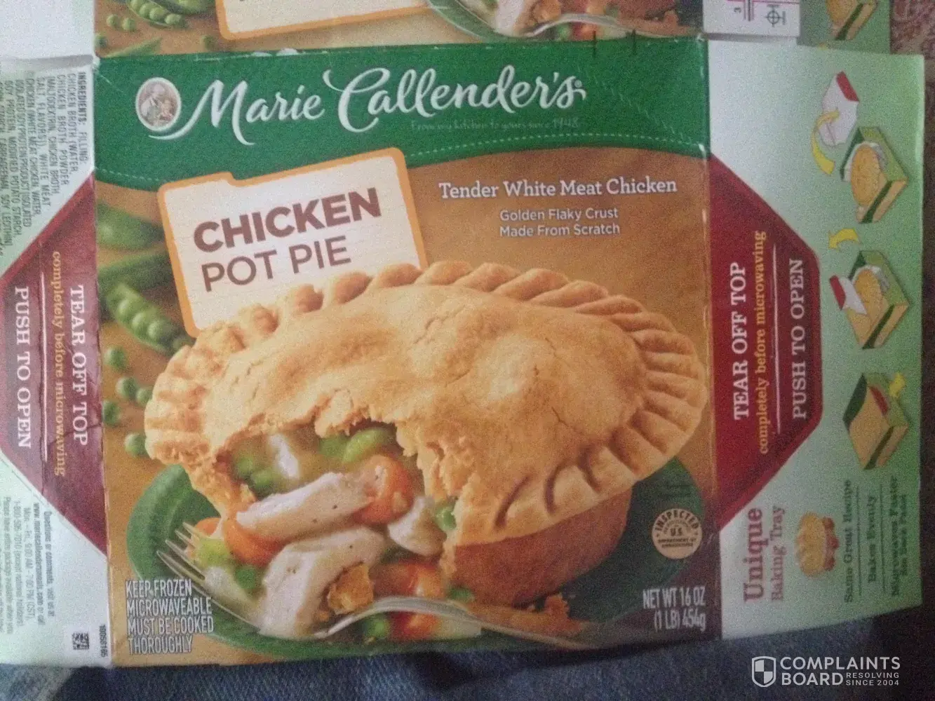 I cooked the chicken pot pie in my microwave as instructed on the instructions. It did not tell me to remove from the pan the pot pie was in. Needless to say I'm having to purchase a new microwave, it melted my Tupperware plate and my house filled up with smoke. I will never purchase your product again. I feel you should be buying me a new microwave. I have pictures attached.