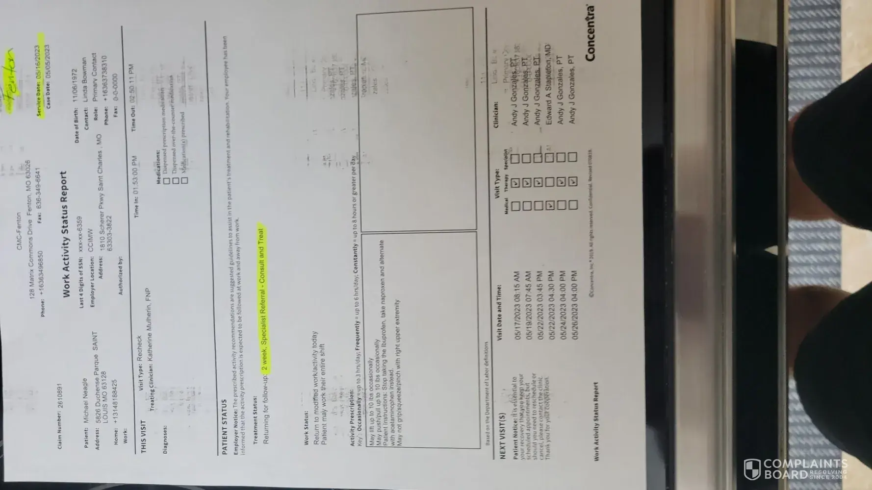 Read full complaint104 Concentra Complaints