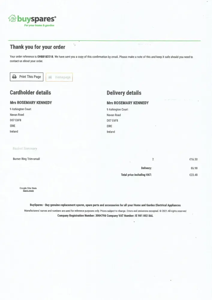 Entered my product serial number in their system to search for the part and it generated the part number but no product information so I could not check dimensions etc or would have known they had got it wrong. Cost me £16 on arrival via their rip off "customer service(sic)" number to get return authorisation and £15 to return the part. Got correct part same price next day direct from the manufacturer with great service and without the hassle. DO NOT USE!