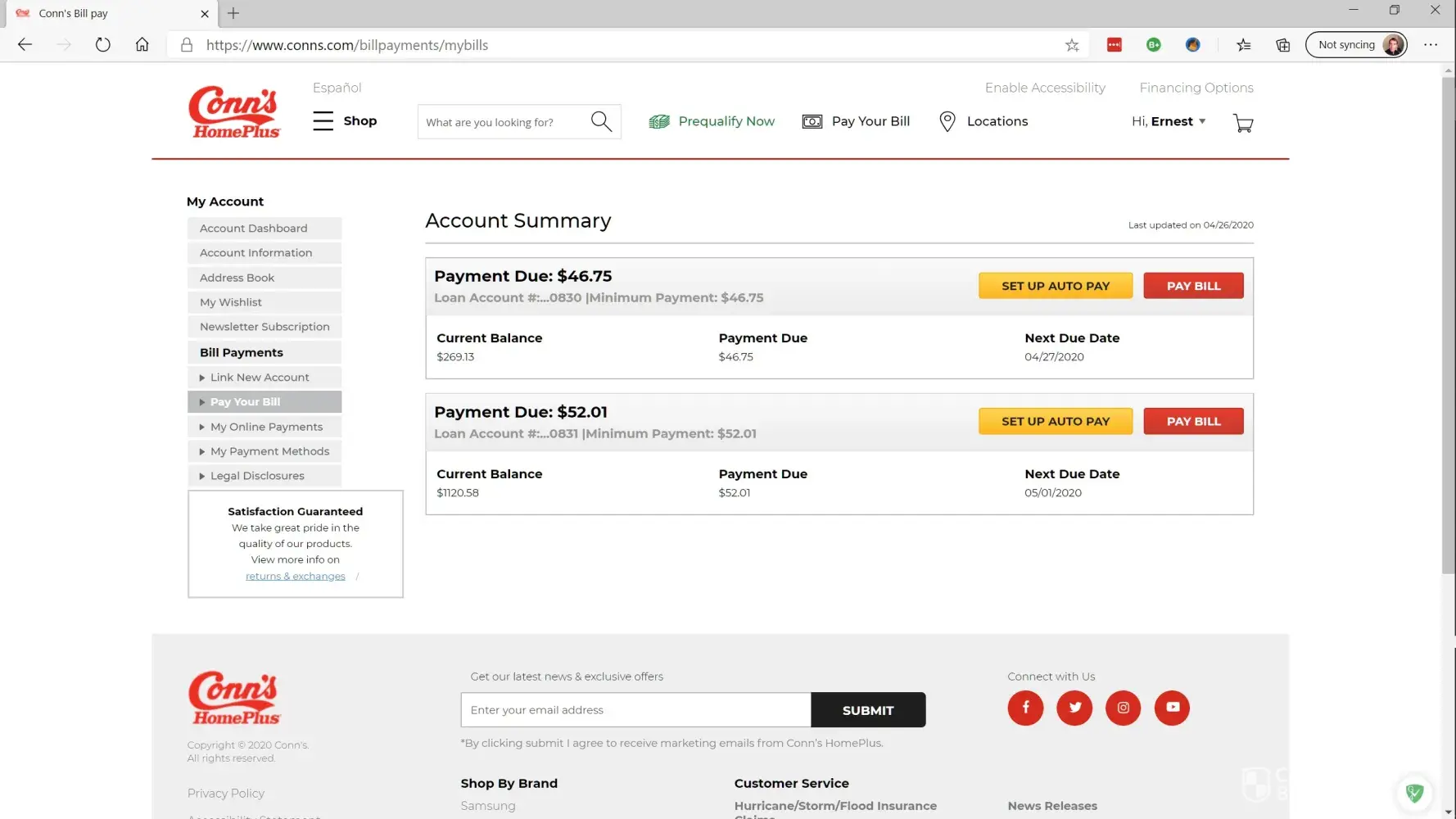 I expect a phone call as soon as possible to get started on resolving these serious issues with Conns Homeplus. Thank you very much four your assistance.