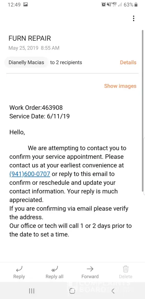 This is what I sent conn's and have not heard a response. They were supposed to send out a tech to a scheduled appointment yesterday and the tech never showed.