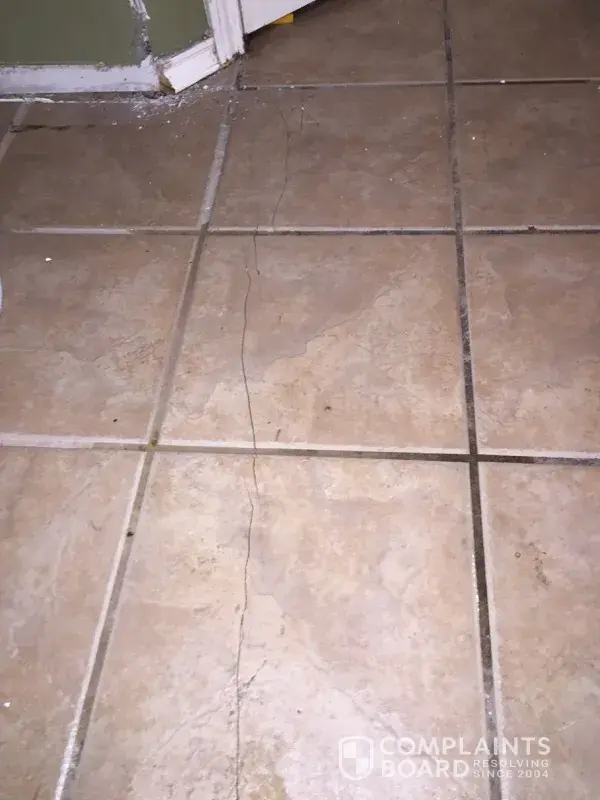 delivery service damaged the kitchen walls and tile with a refrigerator.