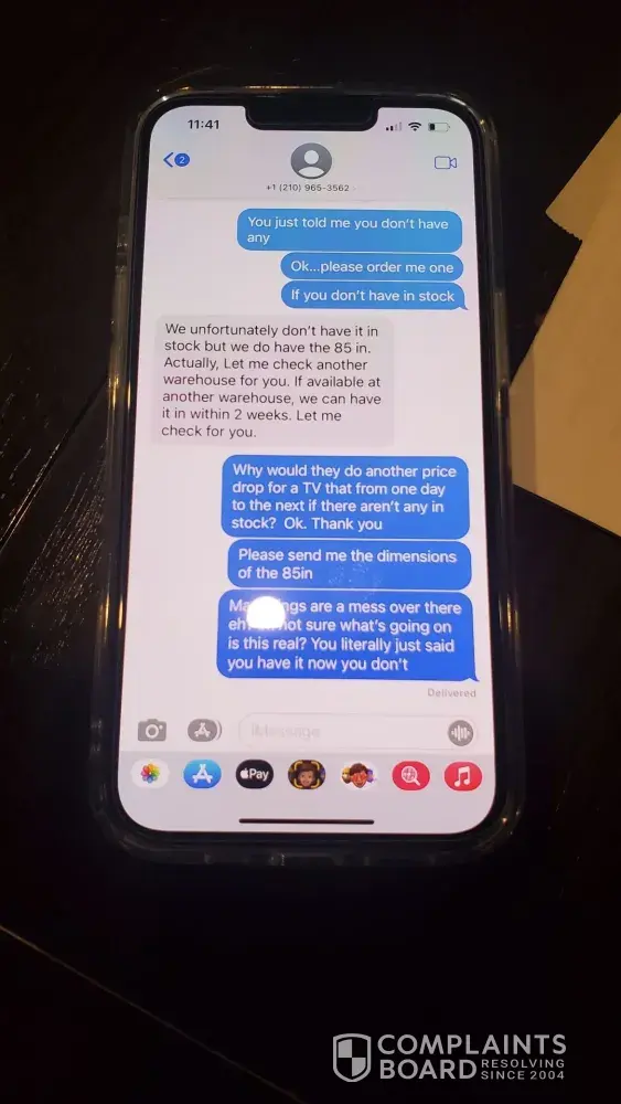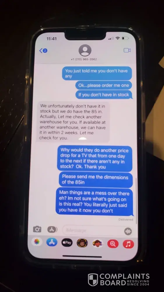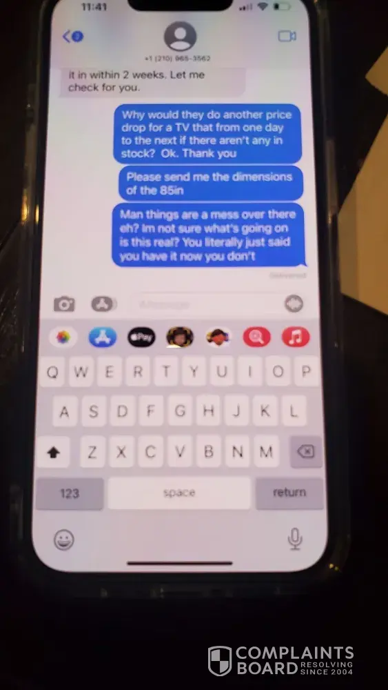 We applied to get a loan for a TV I have been wanting upgrade for about two years but just had to replace my wife's TV last year so we waited. I had been studying to know exactly what I wanted. We got approved for $5,500.00, we applied online. Then Shaq from the Forum in Selma, TX sent us a text to see if he could help we said yes and he told us to come in after 2pm. We got there right about 3pm, waited about 10 to 15 mins for him to finish helping another person. He then came to help is pick a TV out. We decided on the NEO QLED Samsung 75" there was the floor model that was marked down to $2,700.00 $299.00 off original price. I asked do you have a new one, he said yes. I said I'll take it he said that will be $3,400.00 I said it clearly says on the tag original price is $2,999.99. He said hmmm, let me get my manager, so young guy ce out and said it's $3,400.00. I said it's marked as original price as of 02/18/2022 at $2,999.99. He said well that was a typo and removed the tag. I said we'll I guess ypu lost a sell, I didn't come to look at tvs I came to buy one. Then I think the real manager came out and asked them what happened as they were arguing and we walked out the door. No one tried to talk to us to see if they could clear things up or apologize for false advertisement in their own store. I guess I'll have to go buy it somewhere else now. Pretty sad I wasted all this time, excitement, energy for a huge disappointment and just feel gross now. I guess the name fits the description there at Conn's. I have pictures of the tag before they could remove it. The tag was made on 02/18/2022 it's 02/24/2022. Sad the original price of an old TV a 2021 model which will replaced in two weeks with a 2022 model went up $400.00, I really wanted that tv. I would have loved for them to honor there original price marked as of 02/18/2022 on 02/24/2022 on their 2021 line up while I was in the store. Sad to see it was so empty as usual I go to the forum a lot I'm surprised they didn't sell me the new one for $2,700.00 since it doesn't look like they sell anything in the forum location
