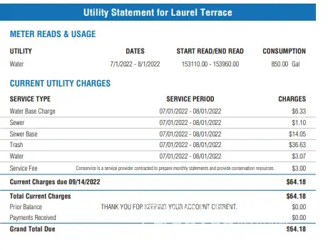 We moved into our apartment March 2022. Have never received a bill or log in info for our account to check the charges. We pay blindly each month. Never receive confirmation of payment, no emails, nothing from Conservice. Our bill steadily increases every month & now they added another “feeâ€. I’ve never had to pay over $100 for water & sewer. See below for monthly increases: