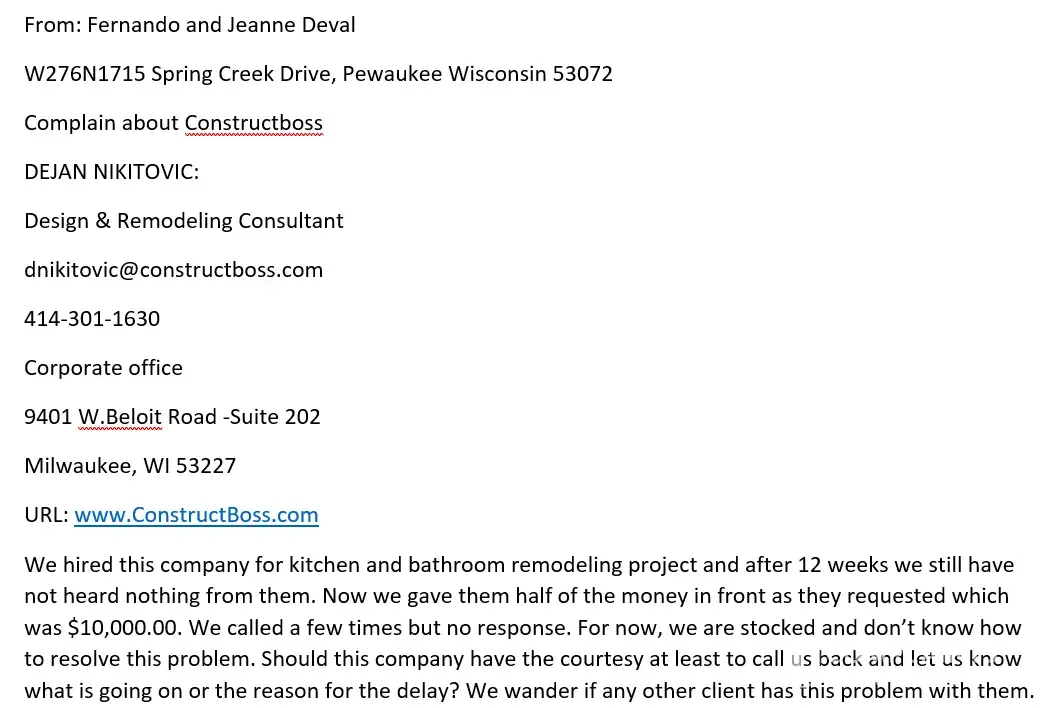 here is the complain we have about contrucboss company