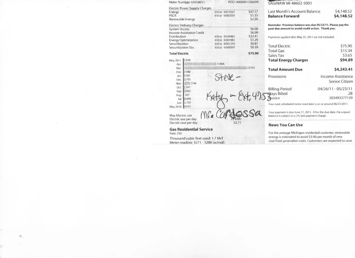 Consumers Energy has THE WORST customer service around. I too, got tricked into not receiving paper bills, just because I went online to make payment arrangements. We have moved and while in our previous home I went online to make an arrangment, our bill was behind and current was due. Times are hard. Anyway, I made the arrangement, made a payment, then I received a shut off notice. I called them, (waited on hold for at least 20 minutes), then they said my account was so delenquint, I could not do payment arrangments and they wanted the full balance. Why do they think I made arrangements? Any way, I am still paying on that. meanwhile we received the bill for our new home, an "estimate" reading of $470 something, we were not moved in yet, but owned the home, no lights, no heat, no tv, washer, dryer, etc. I tried to call, on hold for 15 min, lost signal on my phone, lost patience, hung up. Fine, we'll pay it. This months bill is $677. we are not home during the day, we turn the heat down to 60 up to 65 after we get home. tv not on a lot, no excessive anything. Newer home with great air tight windows, newer furnace, not drafty anywhere. Furnace not running constantly. Of course I can't call without waiting an estimated 30 minutes. WHO has 30 miutes to sit on hold. Oh, and when I try to pay online for the other house, when I log in, there is my balance, when I go to the payment page, it says CURRNTLY NO BILLS! WHAT A JOKE!
