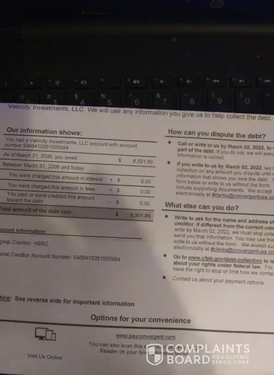 I received a letter from Convergent on Jan 21st 2022 for a debt that is 16 years old! Saying that i owe 6501.00. I've never never owed anyone that much money! When I saw who the original creditor is I got even more suspicious. It is with an old account that I have been scammed on at least 2 other times. HSBC. So I really suspicious that this might be a scam trying to get more money off this account .