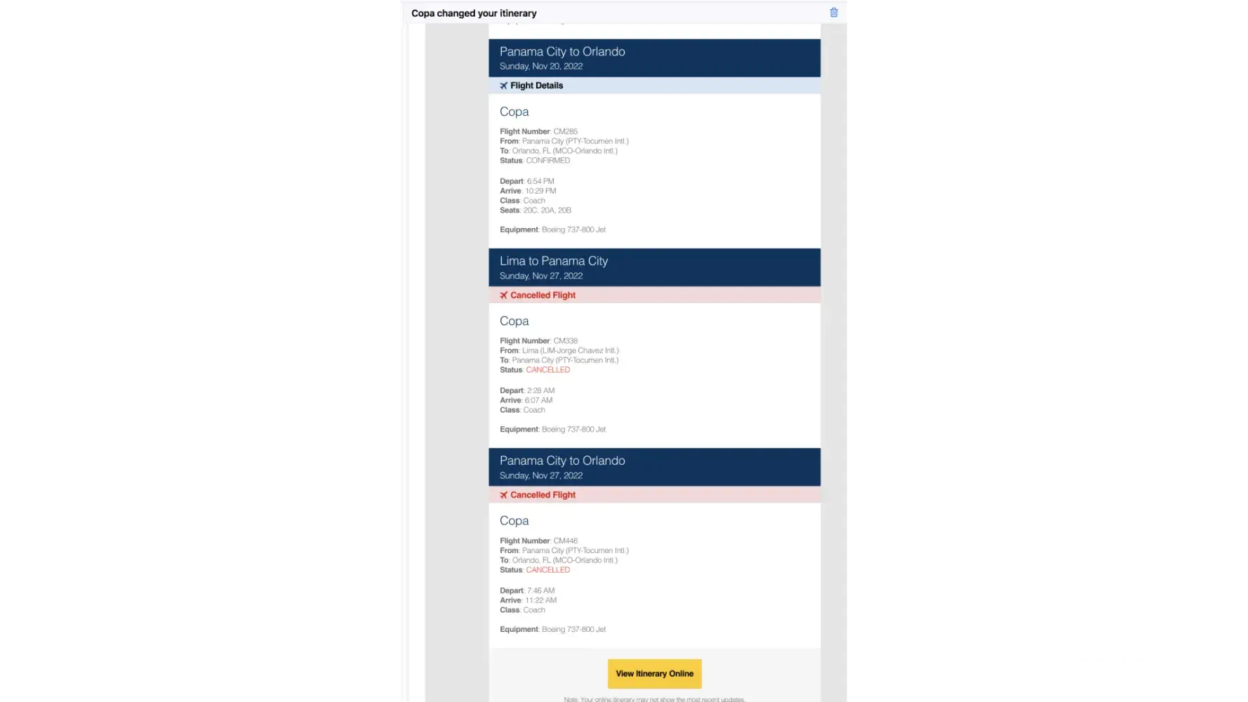 Copa cancel my ticket to POS return flight without warning