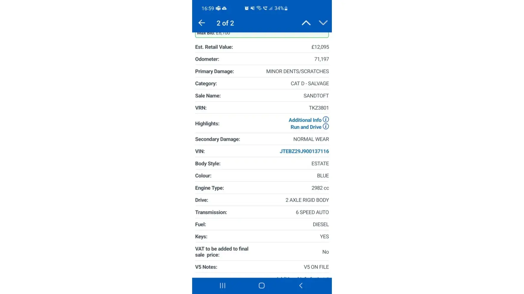 I have purchased a Toyota Landcruiser for £7150 which was advertised as 'Run & Drive' and also showed has V5 on file. It was listed a Category D vehicle with Primary Damage being minor dents/ scratches and secondary damage listed as 'normal wear'.