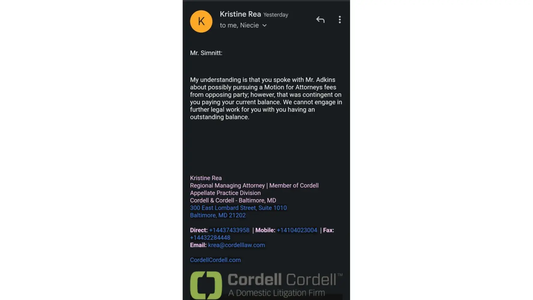 Cordell Cordell Unethical Lawyer and Money-Driven Firm: My Disappointing Experience with Cordell Cordell