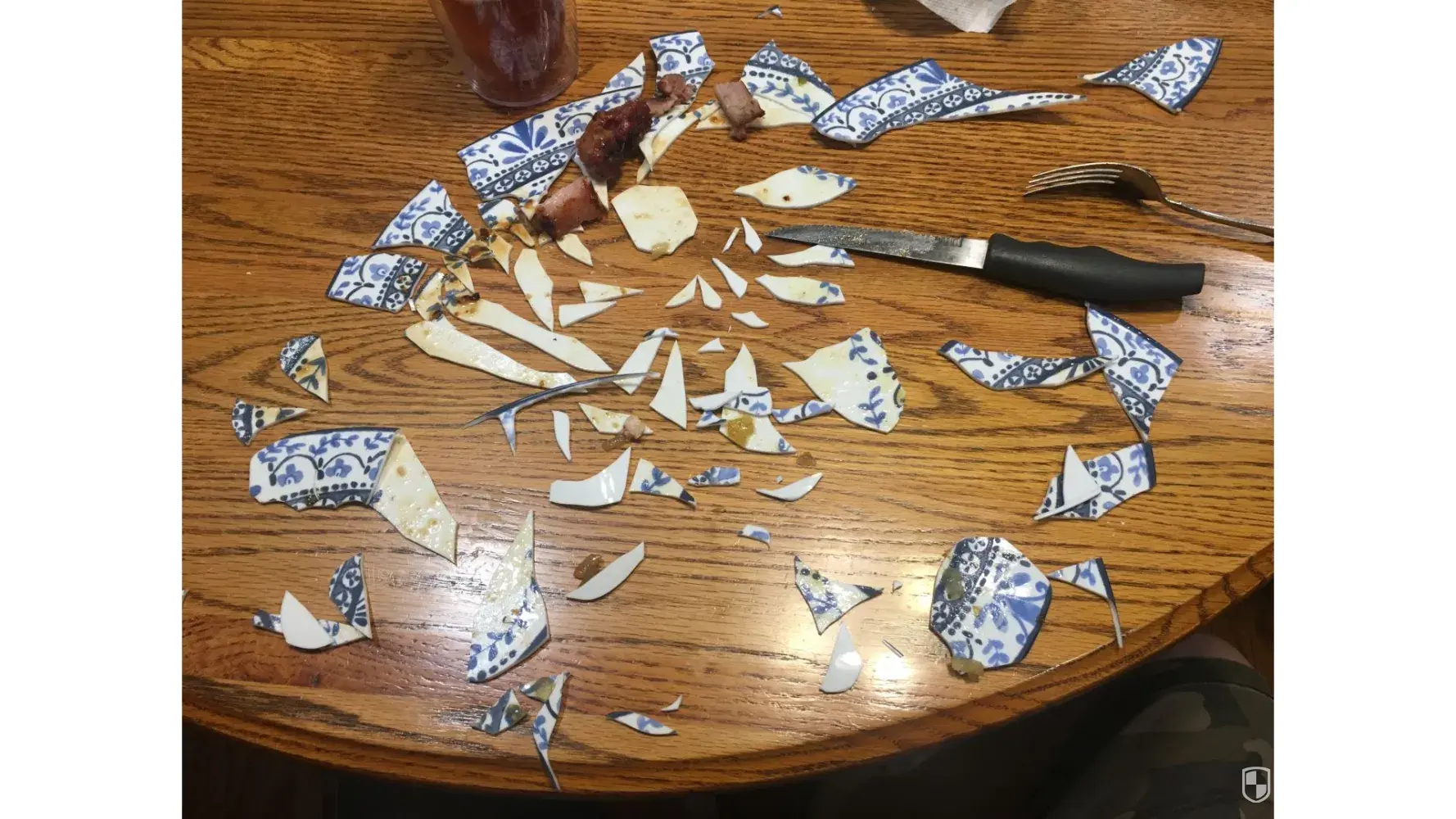 eating dinner about to take my last bite of food and boom, plate exploded. my one year old grand daughter