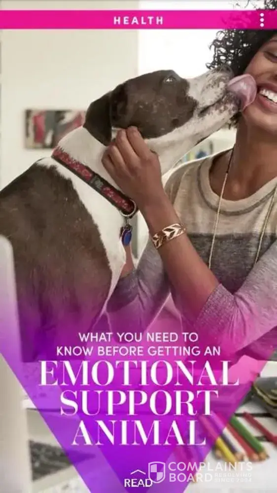 I am contacting you regarding your recent Snapchat article about Emotional Support Animals. The information in your article is incorrect and is going to lead to legal action being taken if the incorrect information isn't corrected. As per the ADA, ESAs have NO unlocks access rights. Putting the information out there that they have PA rights is going to cause problems such as arrests to those who believed the article and brought their ESA with them, lawsuits to stores that allowed ESAs in and they caused damage, lawsuits where ESAs attacked legitimate service animals, etc. ESAs are usually untrained, meaning they pull at the leash, bark, jump on people, and sometimes show aggression. There are laws in place to keep service animals and the public safe, but you are going to convince your readers that those laws are wrong. Because of false/misleading information found in your article, legitimate service dogs have had to retire from having fake or even legitimate ESAs attack them. Because of the lack of research that goes into your articles, I'm suprised the business is still running. Please educate your staff and teach them to do research before they post. You'd think professional writers would know that. I'm very disappointed and will be in contact with my lawyer. What is the Cosmopolitan Snapchat Suprvisor's phone number? Fake ESAs and Service Animals are such a huge problem. I want to be able to go out with my SD and live normally, but every time I go I have to watch our backs for fakes and ESAs. My life could actually be in danger if she missed an alert because a ESA or fake was distracting or attacking her. We've been attacked before by a ESA in a place it should not have been.