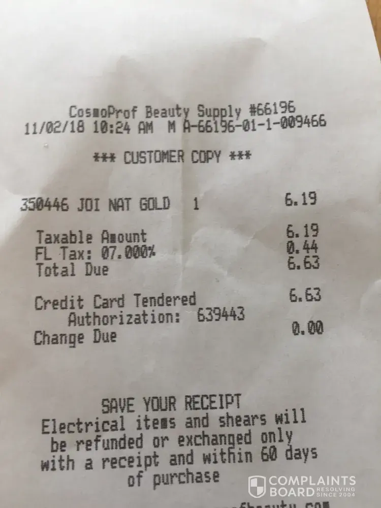 CosmoProf Beauty complaint on worker elliot at cosmoprof store #09508