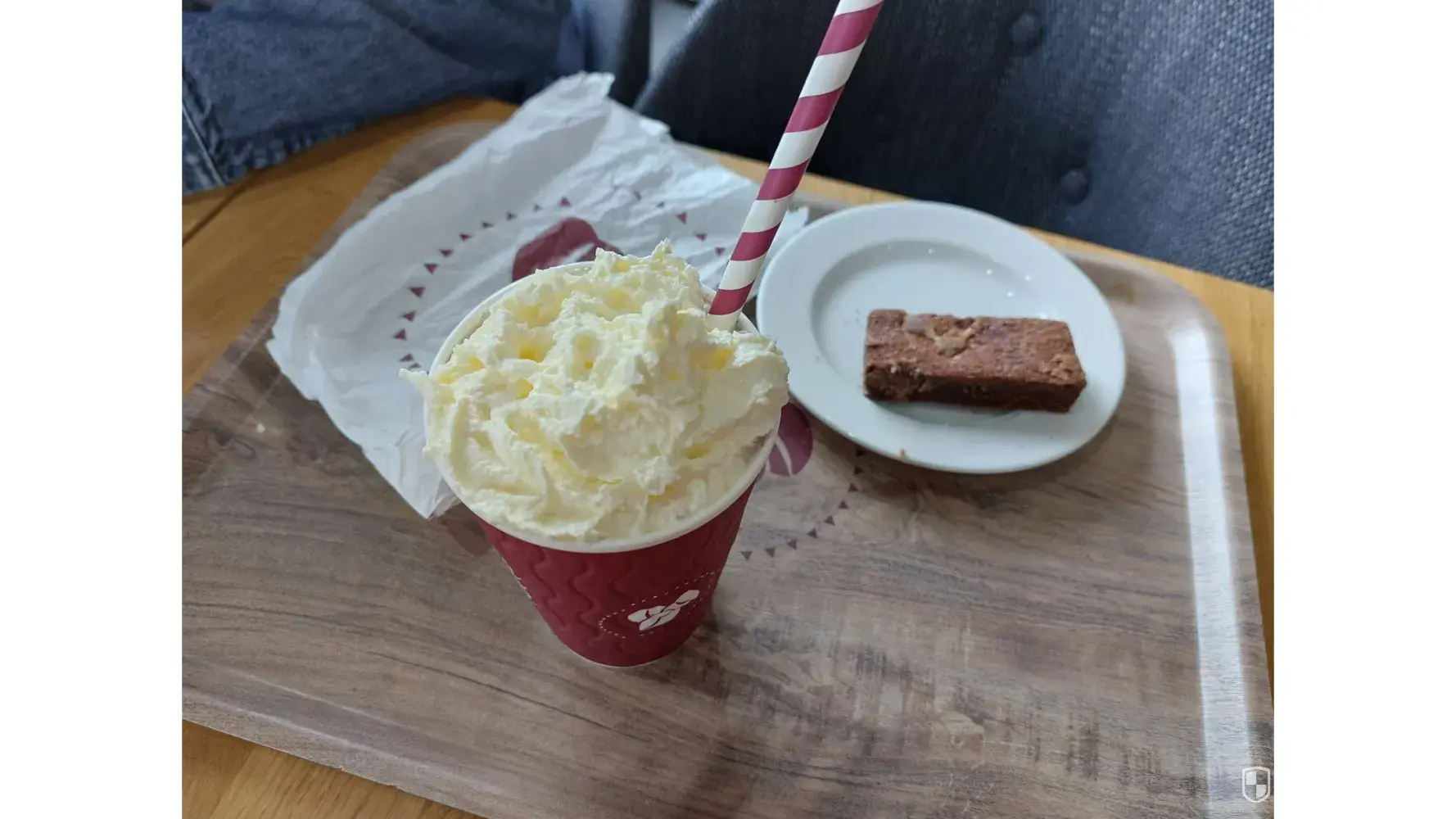 Chloe who served me made my drinks in cardboard cups and then forgot the rest of my order went about serving another customer. Leaving my drinks on the counter. Eventually she returned and after I told her she forgot the cakes and gave me the rest of my order.