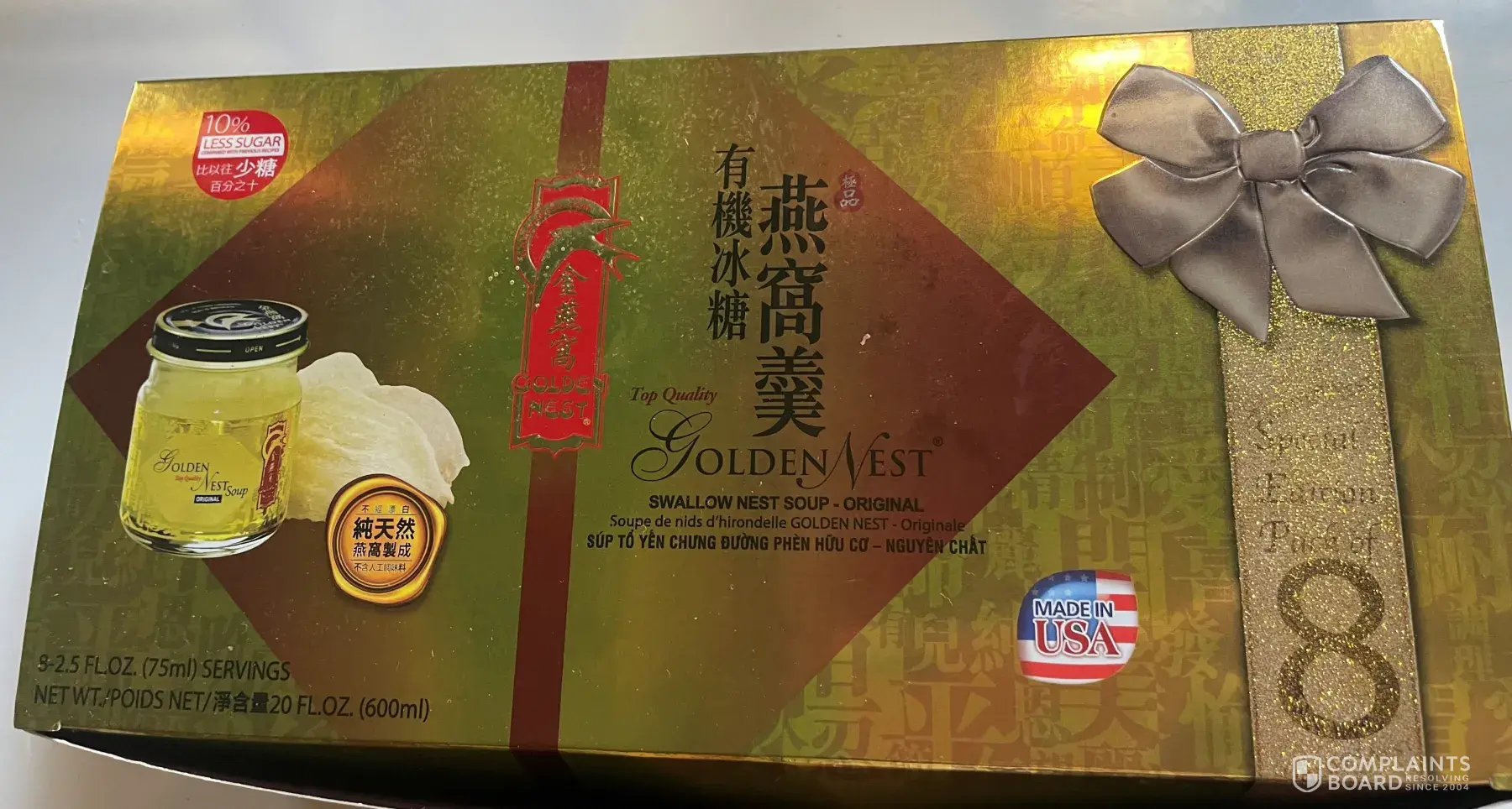 Bought the Golden Nest soup from Costco. When drinking one of the bottles, my throat felt so hurt! I tried to spit out everything, but some teeny tiny pieces were still in my throat! Rinsed many times finally spat out all of them! I saw glass chips lying there. One is bigger and recognizable, others are all very tiny. I collected the bigger one and put it back to the original bottle and found there still some tiny chips at the bottom! I can't imagine what if I swallow them! This is so terrible! I hope there are not any other product like this on sale and nobody else get hurt! OMG!