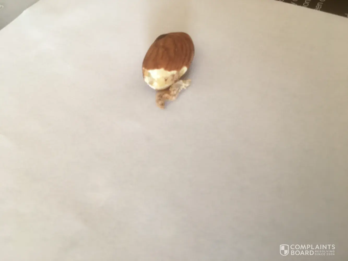 Has many worm hole almonds. One with a larvae like substance attached on it.