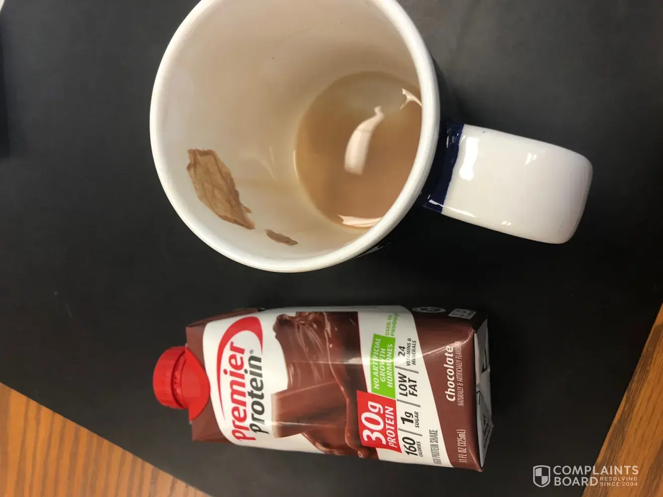 I have been using Premier Protein shakes daily for over a year. The last three shakes I had all appear to have a paper/plastic material in them that is not liquid (See attached). It is unsettling and uncomfortable to be drinking a liquid with chunks of paper/plastic like material in it. I even accidentally swallowed some of this material as well. I believe there may be a manufacturing defect with the packaging. I am concerned over continuing to drink this product and the potential hazard to swallow or ingest this material. I would like to continue to buy and use this product but need this issue resolved before I would buy again.