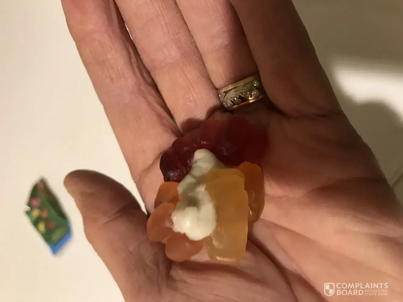 I purchased this product on Sunday at the Palm Desert, CA Costco. I was going to hand them out on Halloween. Not now, I opened a few bags and the pictures added shows the inside of the last package I opened. . I definitely won't be buying or eating these again. I would be so embarrassed if this bag was given to a child. I am in the process of bringing them back to Costco so they can notify the company.