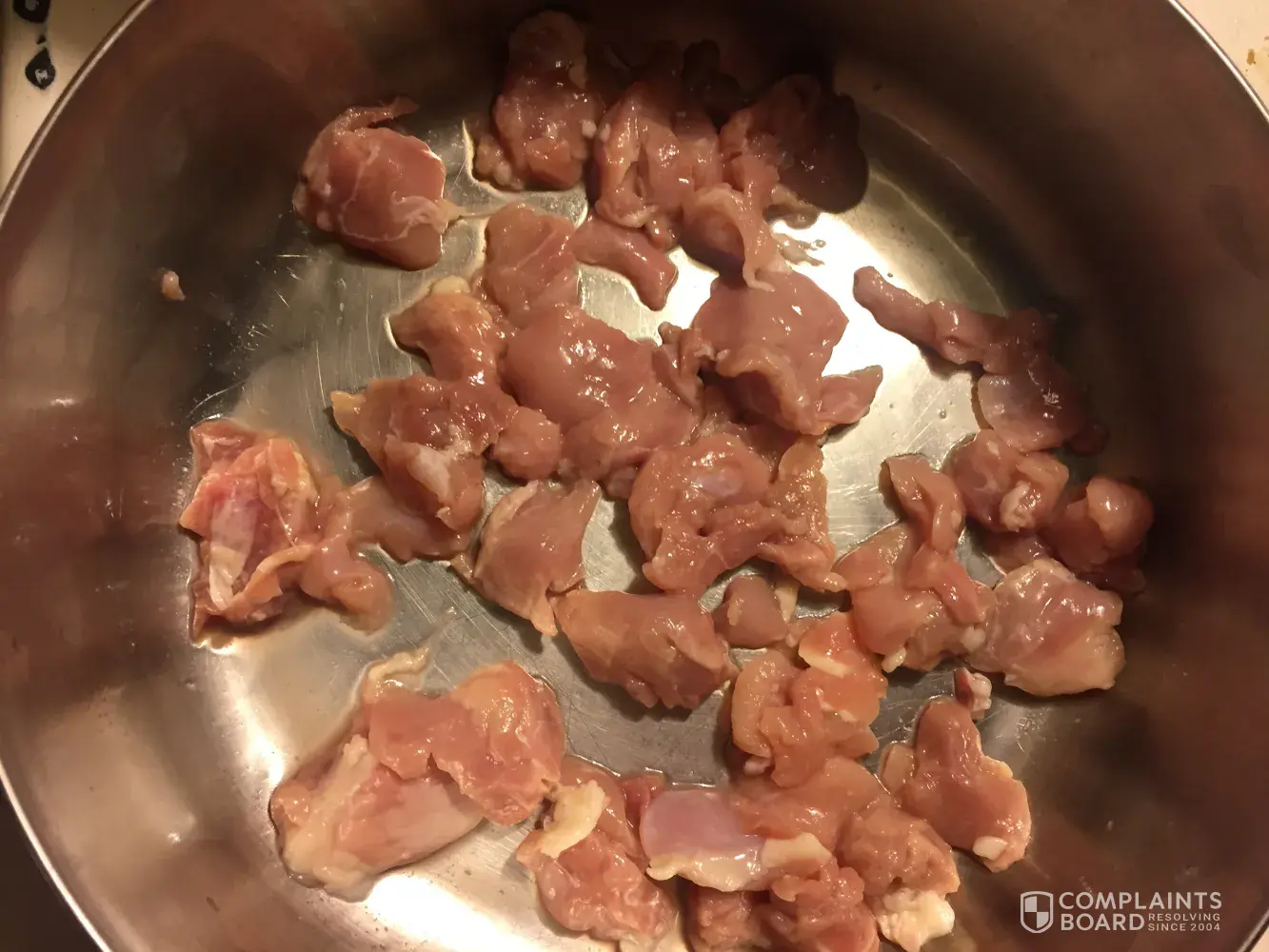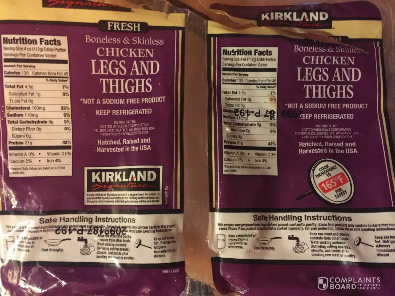 After purchasing the six package of Kirkland boneless legs and thighs, I opened two packages today in order to marinate and grill them. To my surprise, instead of usual four to five WHOLE pieces, I found grape-sized chunks (more than half of one package). I am unable to go to Costco Gaithersburg store (#213) tonight to complain in person, and will not feel comfortable carrying raw pieces of meat to Costco personnel.